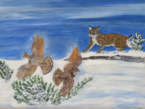 Concept sketch for commissioned bronze Bobcat and Bronze Snow Shoe Rabbit. The bronze Bobcat and Snowshoe Rabbit are Installed at the Wild Center Natural History Museum Tupper Lake NY